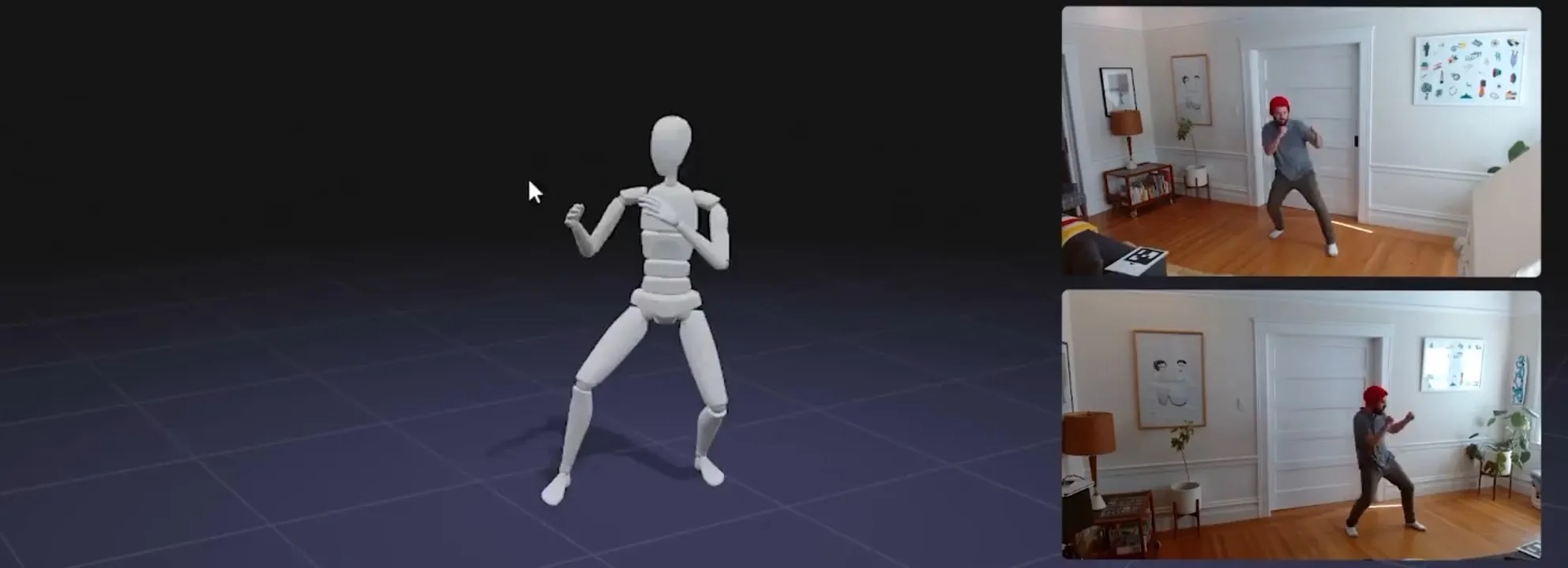 For stable solves, record a short “neutral” segment with the performer standing still and both feet flat and fully visible. Those few seconds give the system a clean baseline for estimating body alignment, scale, and contact points.